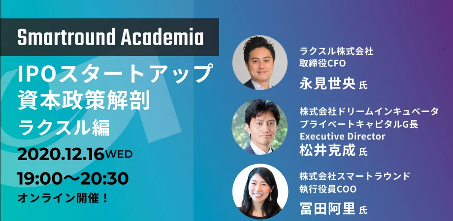 Smartround Academia IPOスタートアップの資本政策解剖~ラクスル編~