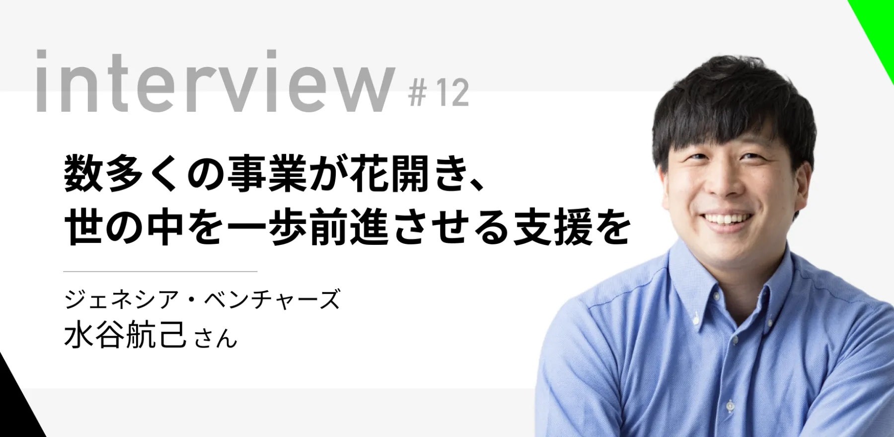 「数多くの事業が花開き、世の中を一歩前進させる支援を」ジェネシア・ベンチャーズ 水谷航己さん
