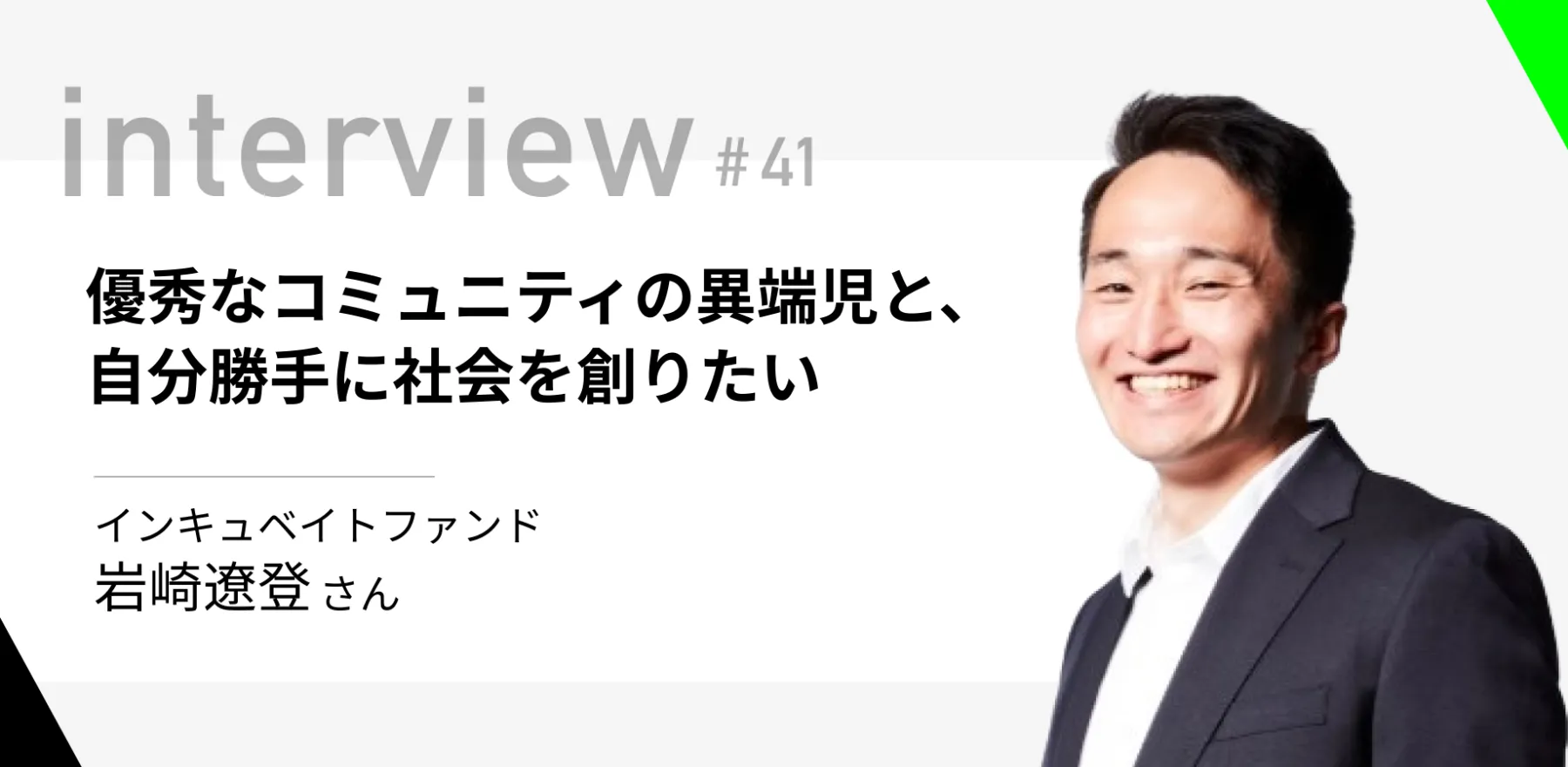 Startup Next編集部がお届けする、今をときめく!投資家インタビュー。志を持って活動される投資家のみなさんのバックグラウンドや考え方に、一歩踏み込んでご紹介しています。今回はインキュベイトファンドの岩崎遼登さんにお話を聞きました。